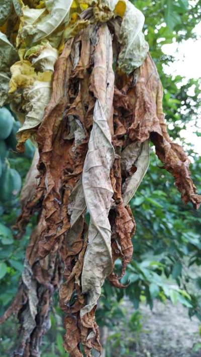 patte sukh rahe hain, fal Bada nahin ho raha hai l, aur patte ka jo size hai vah bhi sikuda jaisa dikh raha hai