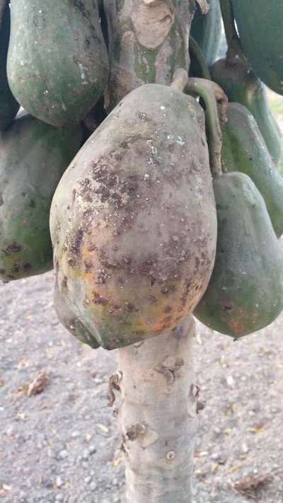 पपीता का पत्ता पीला पड़ा हुआ उसमें कि 12 लगड़ा सफेद जैसा भी बीच-बीच में दाग हो गया है