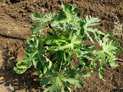 नमस्ते Abhijit Aute अभी गर्मी के मौसम है आप 5-7 दिन के अंतराल में पानी डालते रहे आपके पत्ती यह लक्षण दो कारण से हो सकता है 1 Papaya Leaf Curl Virus Boron Deficiency खाद की कमी करें ऊपर दिए गए हरे लिंक को दबाए और अपने फसल के साथ लक्षण का मिलान करे plantix पुस्तकालय के माध्यम से नियंत्रण की जानकारी प्राप्त करे। आप सप्ताह में आप ड्रिप पर 13.5 ग्रा यूरिया +10.5 ग्राम पोटाश प्रति सप्ताह डाले 3-4 मह के फसल होने पर पर पोधा 300 ग्रा super phosphate 20 female पौधे के बीच में एक male पौधा रखें इससे फल अधिक लगता है जब माइक्रोन्यूट्रिएंट्स का छिड़काव SZnSO4 0.5% + H2BO3 0.1% का छिड़काव 4 मह में दूसरे 8 मह इससे आपका उत्पादन अधिक आएगा