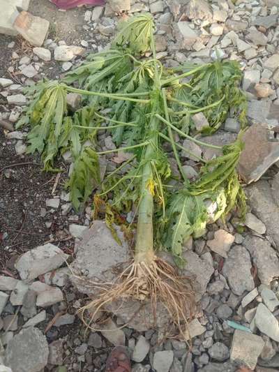 पपीता की पत्तियां पिले रंग और धब्बे पड रहे है।