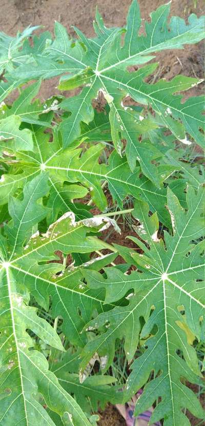 कुछ प्लांट के पत्ते इस प्रकार से हो रहे हैं।।।2-3 दिन से बारिश हैं..,ओर 1 वीक पहले fungicide+micronutrients+12.61+boron+nim oil का स्प्रेय किया था।।।