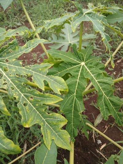Hemant Rathore आप की फसल में पपीते का मोज़ाइक जीवाणु पपीते की पत्तियों को मोड़ने वाला विषाणु 👆 ऊपर दिए गए हरे लिंक को क्लिक और अपने फसल के साथ लक्षण का मिलान करे,और plantix पुस्तकालय के माध्यम से नियंत्रण की संपूर्ण जानकारी प्राप्त करे। 🌾🐛👍 आपके फसल में पत्ती के रस चूसने वाला कीड़ा लगा है उसी के कारण यह रोग फैल रहा है रिजेंट + अडमायर दवाई छिडकाव किजीए इसके बाद आप मैग्नीशियम सल्फेट खाद का छिड़काव करें