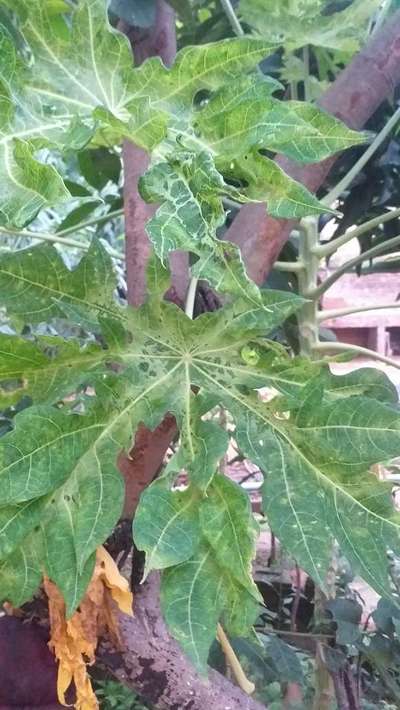 सर यह पपीते के पेड़ है हमारे इस पर इस तरीके के सफेद धब्बे हो जाते हैं और यह पेड़ 8 महीने के हो गए हैं इस पर कोई फल नहीं आया है कृपया इसका इलाज बताएं यह 5 पेड़ हैं