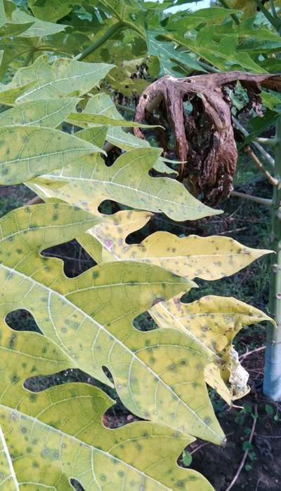 पपीता के पौधे के निचे तरफ से पीला पड़ रहा है और जले टाइप हो रहा है