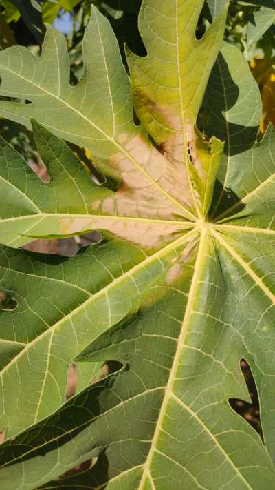 पपीता के पत्ते उपर की तरफ से पीले हो गए हैं