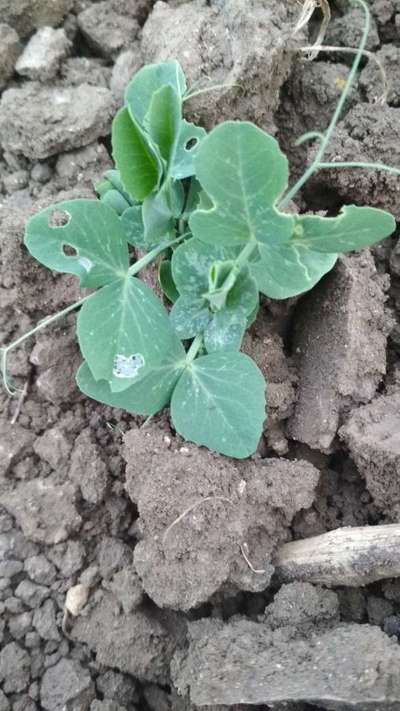 मटर की पत्तियां पीली पड़ रही है ऊपर से नीचे की ओर