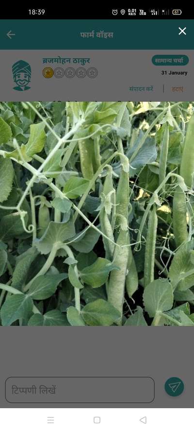 हरी मटर में पाला लगने से मटर के ऊपरी हिस्से में सफेद कलर बन गया है, जबकि मटर अभी मध्यम आकार में है।