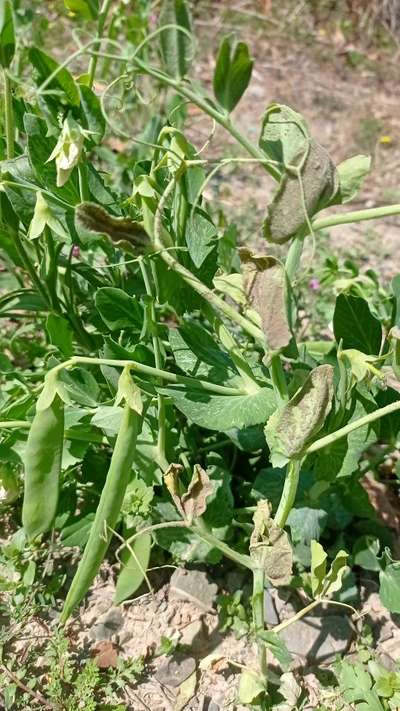 mattar ka paudha nichae se uska patta sukh rha h kya kre. kon se dwa ya powder ka istemaal kre....