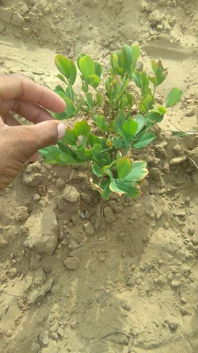 मूंगफली वृद्धि कम करती है मूंगफली की पत्तियों के किनारे जले हुए हैं