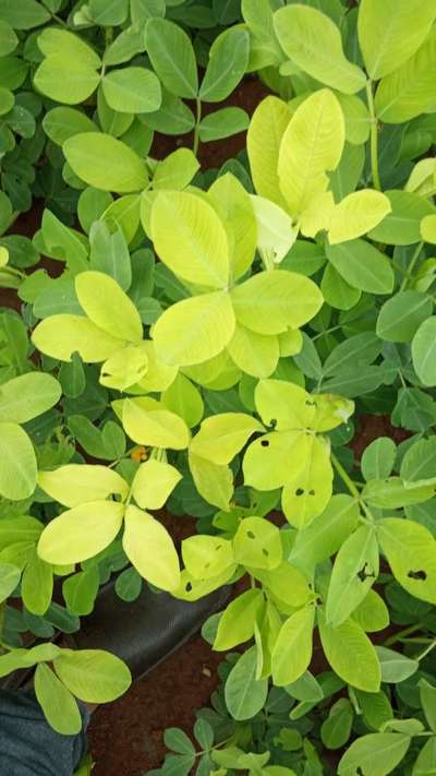 Yahan mungfali Ka paudha Hai Iski Patiya Pili Kyon Ho Rahi Hai bataiye isme Kiska spray Karen jisse skipping step podhe Ko Kisi Prakar ka effect
