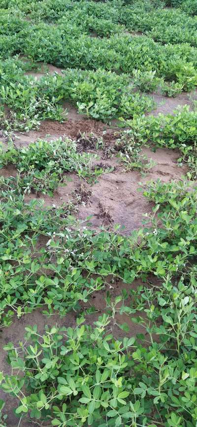 मूँगफली के पत्तों पर छेद हैं।