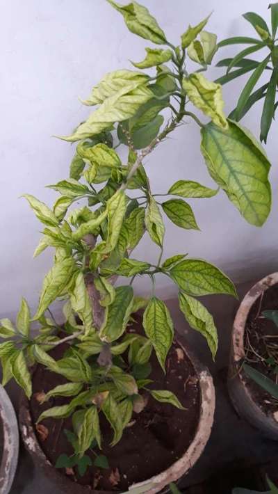 पत्तियाँ आगे की ओर मुड रही हैं कृपया समाधान करें।यह गुड़हल का पौघा है।