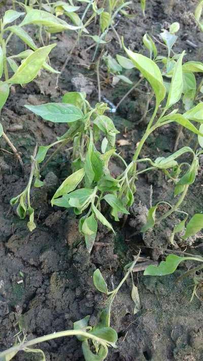 पतीयो का सड़ना ऊपर की और मुड़ना मिर्च का पौधा भूरा भूरा दिखाई देता है