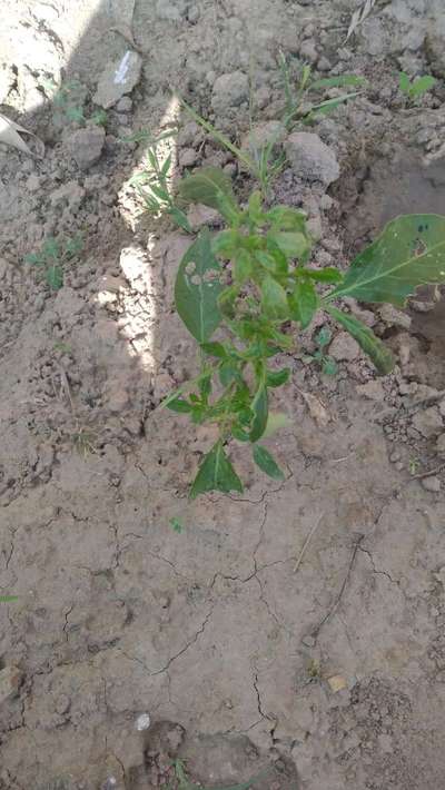 पत्तियों में मुड़ाव हो रहा है एवं आकर छोटा व पीलापन हो रहा है