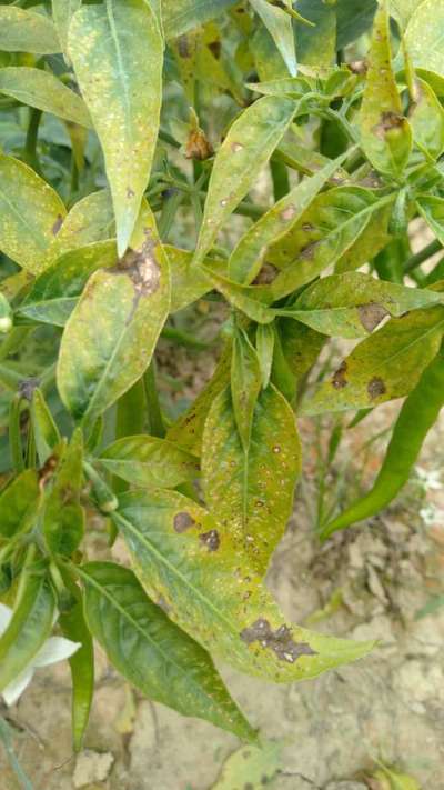 मिर्ची के पत्ते का धब्बा (सेर्कोस्पोरा लीफ़ स्पॉट) उपर दिए गए लिंक पर क्लिक करके देखिए इसकी रोकथाम के लिए मंकोजब 0.25,% के स्प्रे करे