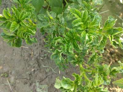 Ajay नमस्कार आलू की पत्तियों को मोड़ देने वाला विषाणु (लीफ़रोल वायरस) इसके समाधान के लिए आप ऊपर दिए गए हरे रंग के लिंक पर क्लिक करें और Plantix पुस्तकालय के माध्यम से अपनी समस्या का समाधान प्राप्त करें।