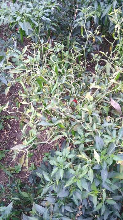 मिर्च की पत्तीया पिले व लाल हो रहा हैं