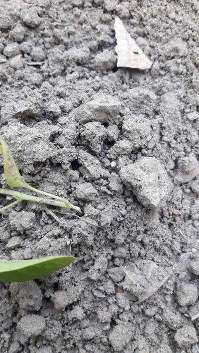 पत्तियां पूरी तरह लौंजी पड़ गई है और नीचे तने के पास सफेद सफेद कुछ है
