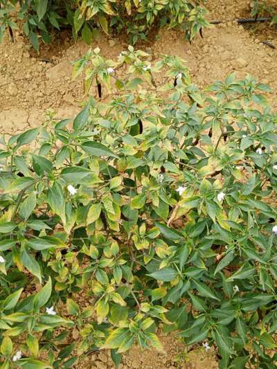 पतीयो का सड़ना ऊपर की और मुड़ना मिर्च का पौधा भूरा भूरा दिखाई देता है