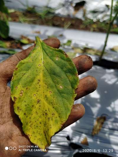 पत्तियां पीली होकर झड़ रही है और उस पर धब्बे भी हैं