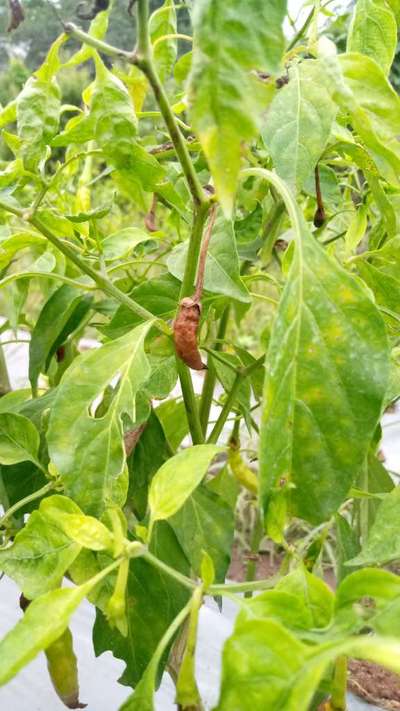 मिर्च के पौधे में ऊपर से पत्ते सूखने लग गए हैं और कहीं-कहीं पर मिर्ची भी सूखने लग गई है जिस डाल पर पत्तियां नहीं सूख रही है उस डाल पर भी मिर्ची खराब होने लग गई है इस समस्या को रोकने के लिए क्या उपाय करें