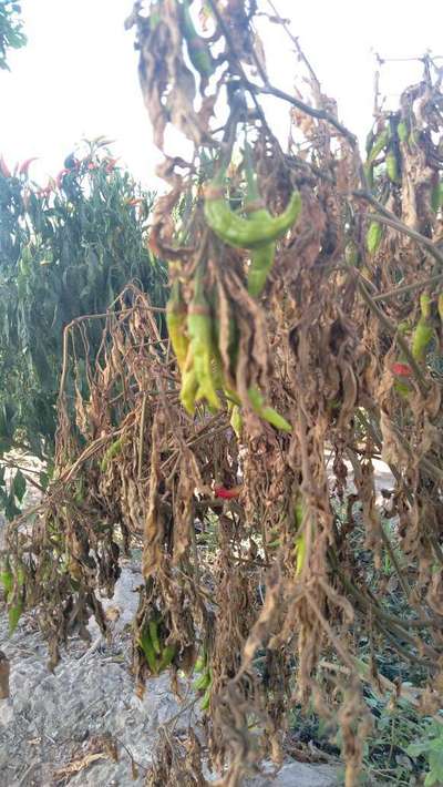 Hassan Gujjar جناب یہ آپ کے پودوں پر پھپندی کا حملہ معلوم ہو رہا ہے۔ آسکے لیے آپ پودوں پر مینکوذب میٹاالکئسل کیمکل کا سپرے کروائیں انشااللہ اچھا رزلٹ ملے گا جزاک اللہ اس بیماری کے حوالے سے جاننے کے لیے نیچے لنک پر کلک کریں Anthracnose of Pepper