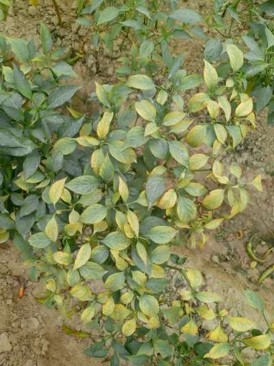 ऊपरी पत्तियां सुनहरी रंग की होती जा रही है पहले खेत के कुछ हिस्से में ये लक्षण थे जो की बढ़ते जा रहे हैं।