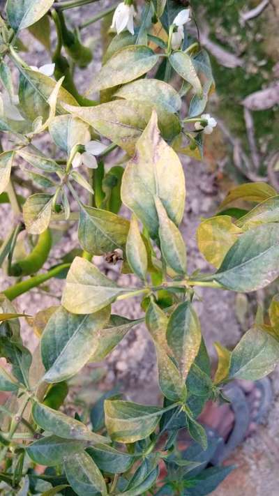 Mirch ka pura ped pila pad gaya hai jisse pura khet kharab ho gaya hai aur poudhe ka bikas ruk gaya hai