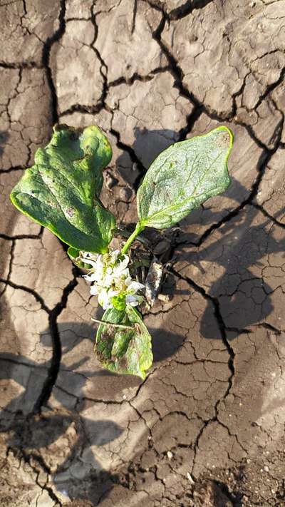 ऊपरी पत्तियां सुनहरी रंग की होती जा रही है पहले खेत के कुछ हिस्से में ये लक्षण थे जो की बढ़ते जा रहे हैं।