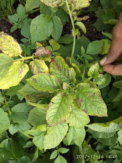 इस प्रकोप रोकने के लिए बोड्रेक्स मिश्रण या फ्लोटन का छिड़काव करना ये अगेती झुलसा लग रहा है