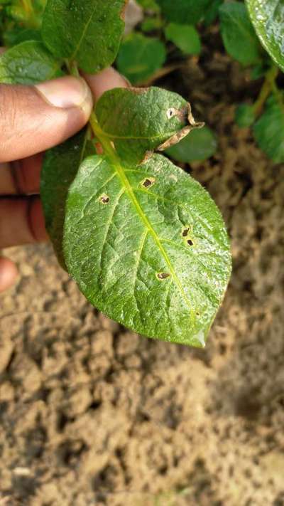 Flea Beetles के निवारण के लिये डेल्टामेथ्रीन + निमतेल का छिडकाव किजीए