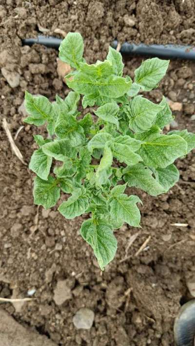 सर आलू का पौधा पीला हो रहा है और उसमें छोटे-छोटे छेद पत्ते में हो रहे हैं