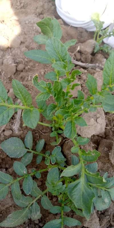 पत्तियाँ एवं तना ऊपर से नीचे की ओर पीले पड़ते जा रहे हैं