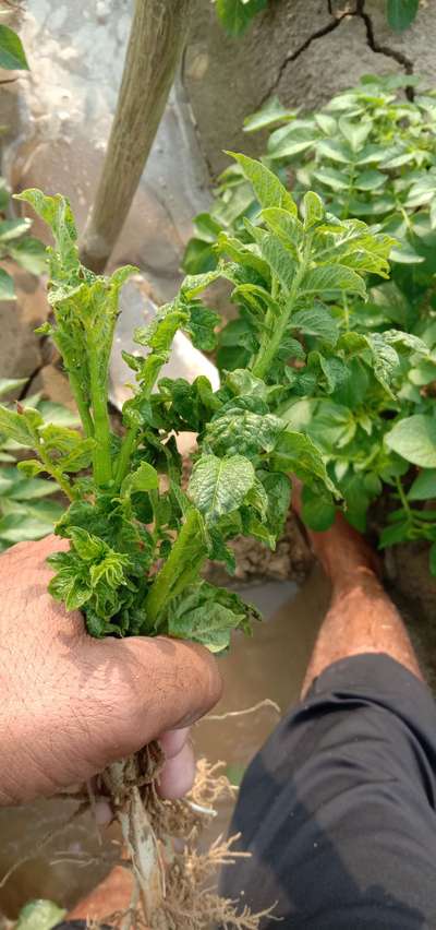 आलू के पौधे की पत्तियां मुड़ के सिकुड़ गई है ग्रोथ एकदम रुक गई है