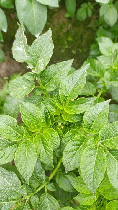 Aalu ki pattiyan Pili pad rahi hai