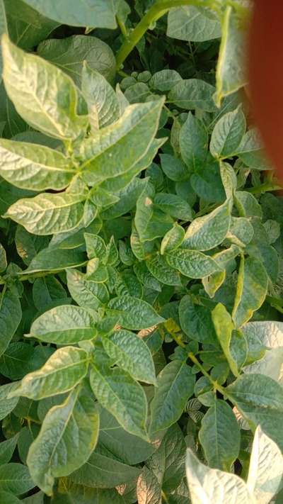 Aalu ki pattiyon ke kinare upar ki aur mude hue .patte sikude huve