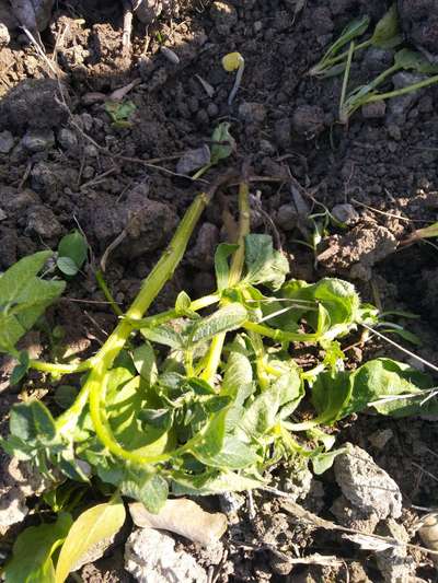 आलू का पौधा नीचे से ख़राब हो गया है।