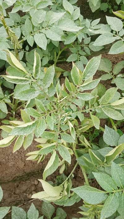 हमारे आलू में पति सिकुड़ रही है और पीला हो रहा है पौधा