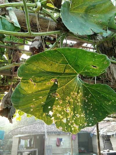 कद्दू में फल नहीं लग रहा है एंव पत्ता गलन रोग है।