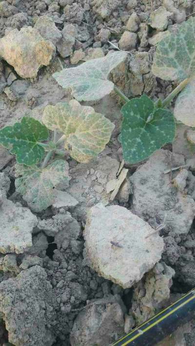 कद्दू की फसल में पत्ते पीले पड़ गए हैं और जड़ के आसपास जो पत्ते हैं उनमें से कुछ सुख भी रहे हैं