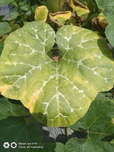 कद्दू मे पत्तियाँ पिली हो रही है, उपचार बताएं