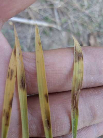 Dhan ki fasal me pattern Peele or kaale dhabbe lag Gaye Hai Iska upchar bataye.