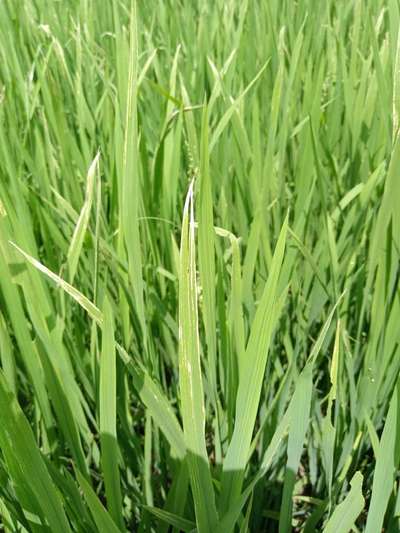धान की पत्तियों में सूखा लग रहा है पत्तियो को कलर सफेद और लाल हो रही है