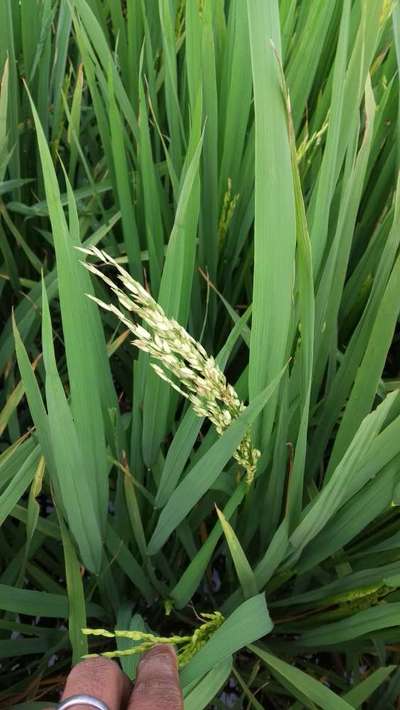 Dhan ki patti uper se cut gae h aur patti safed pdd rhi h