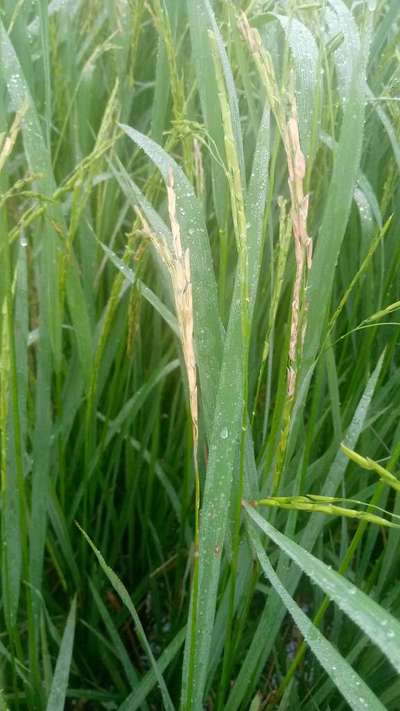 चावल का कंडुआ रोग (कर्नल स्मट) उपर दिये हरे लिंक पर क्लिक किजीए ताकी हम प्लँनटिक्स लायब्ररी मे इस समस्या कि संक्षिप्त जाणकारी व निवारण उपायो का विवरण प्राप्त कर सके। इसकी रोकथाम के लिये 25 ec परोपिकोनाजोल 500 ml को 400 -500 लिटर पानी में डालकर प्रति हेक्टेयर के मान से छिड़काव करें अगर बीमारी नहीं कंट्रोल हो तो 20 दिन के बाद दुबारा स्प्रे कर सकते हैं