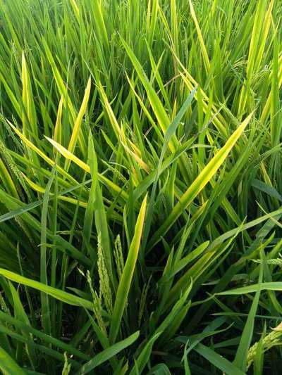 धान के पेडी में पीलापन आ गया है उपरी हिस्से के पत्ते सुख गए है
