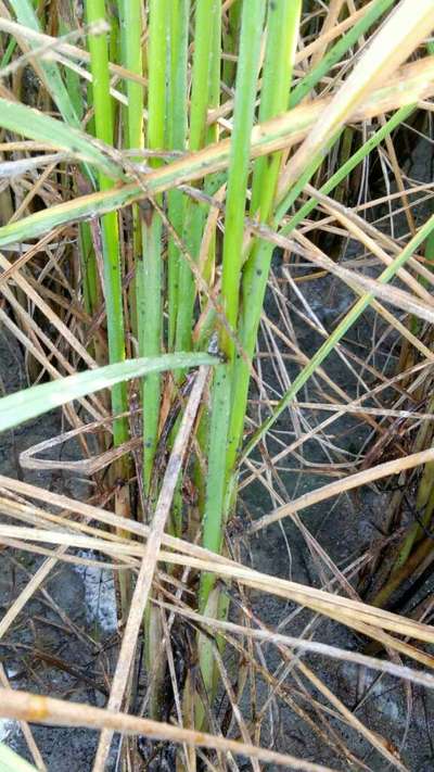 धान की फसल में सुधारने वाला कीड़ा लगा हुआ है और धान सूख रहा है