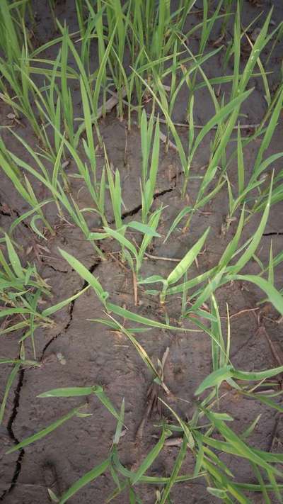 धान कीचड़ में कीड़ा लग गया है पत्ती पीली हो गई है