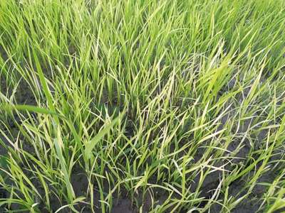 धान की पत्तियां पीली पड़ रही है।