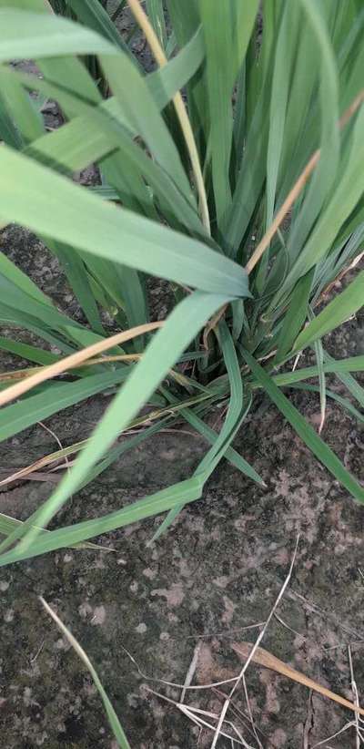 धान के पौधे कि पतिया सुख रही और लाल होरही है